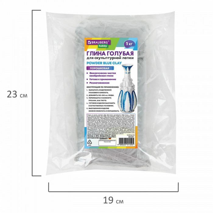 Глина для лепки голубая, 1 кг, порошковая, готовая, размачиваемая, BRAUBERG HOBBY, 665361 в интернет-магазине AV Group по цене от 179 руб. с доставкой по Верхней Пышме, Екатеринбургу и Свердловской области. Минимальная сумма заказа в корзине - от 10 т.р.