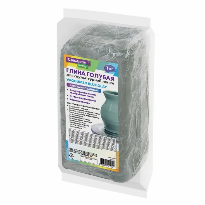 Глина для лепки голубая, 1 кг, вакуумированная, готовая, размачиваемая, BRAUBERG HOBBY, 665357
