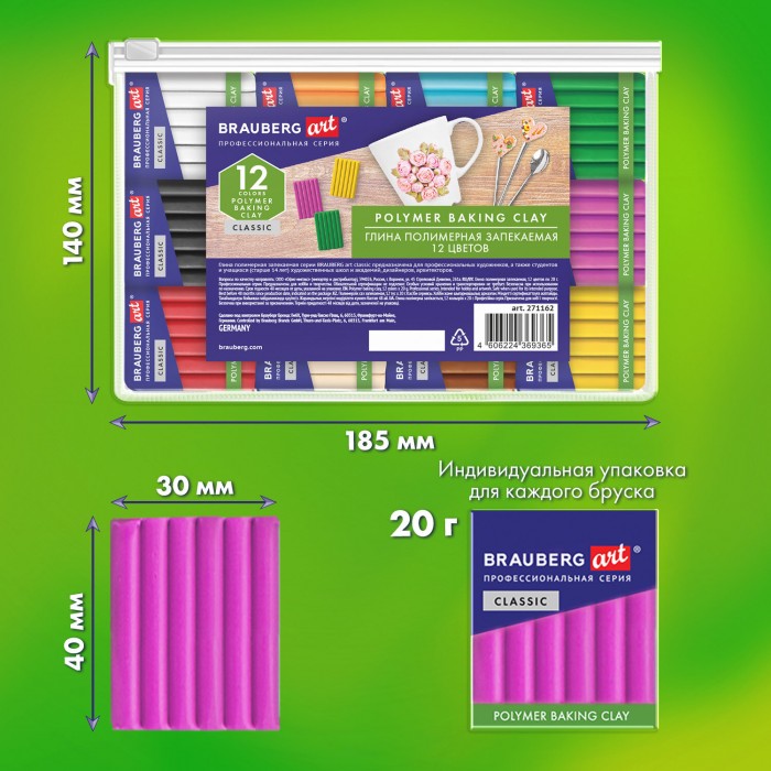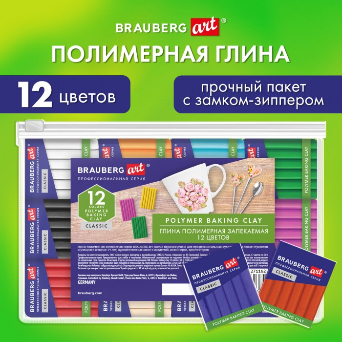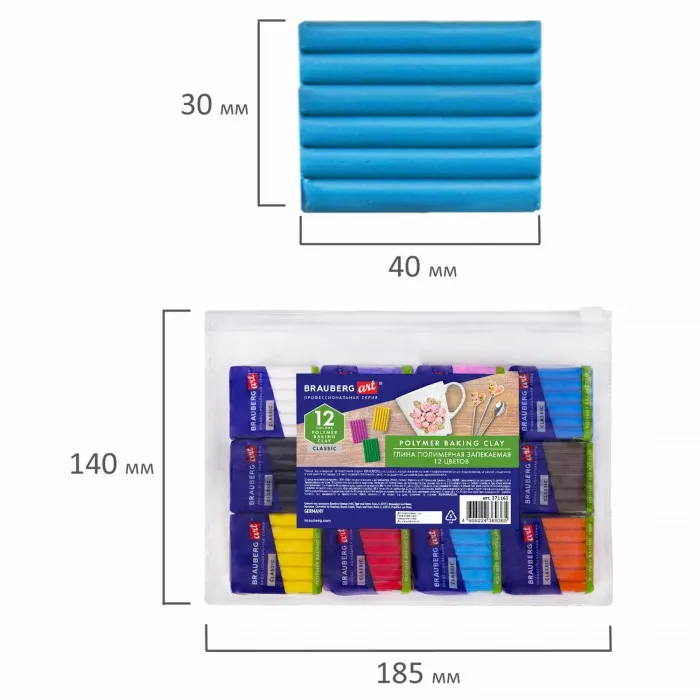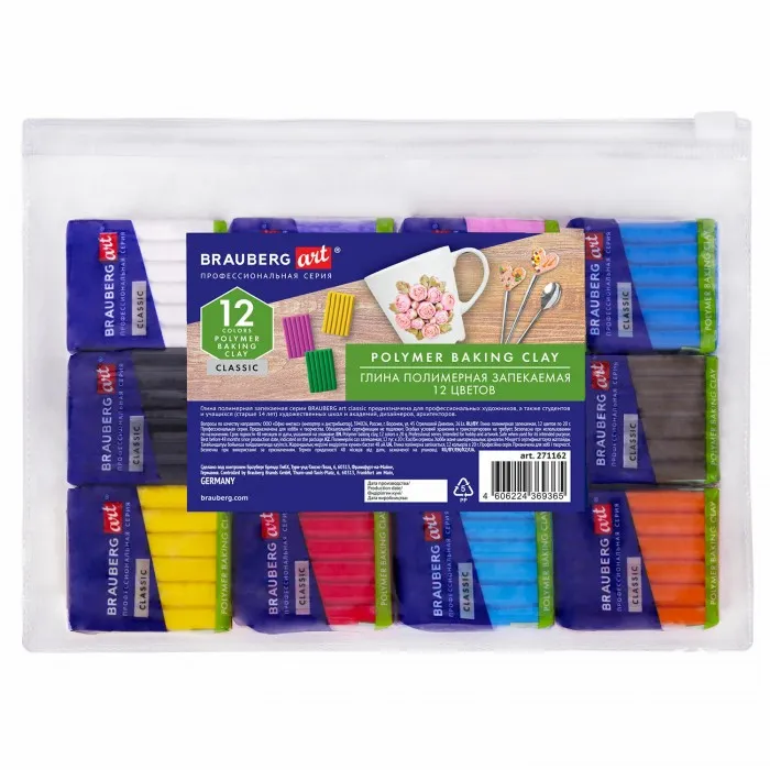 Глина полимерная запекаемая BRAUBERG ART CLASSIC - профессиональная серия. Предназначена для лепки и моделирования, создания игрушек, украшений, предметов интерьера, сувениров.