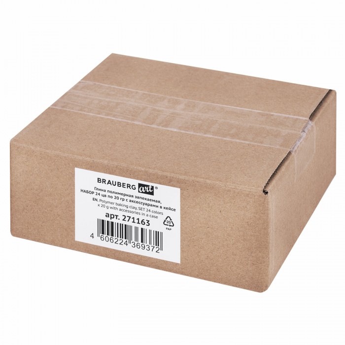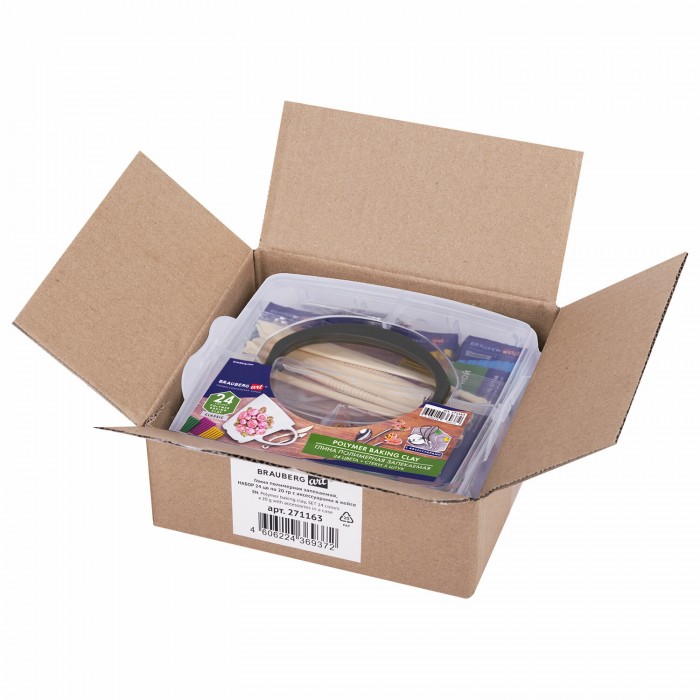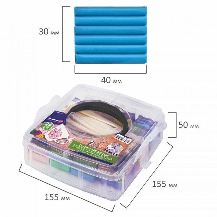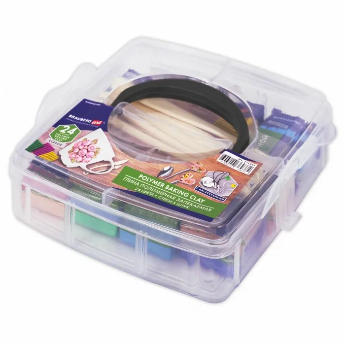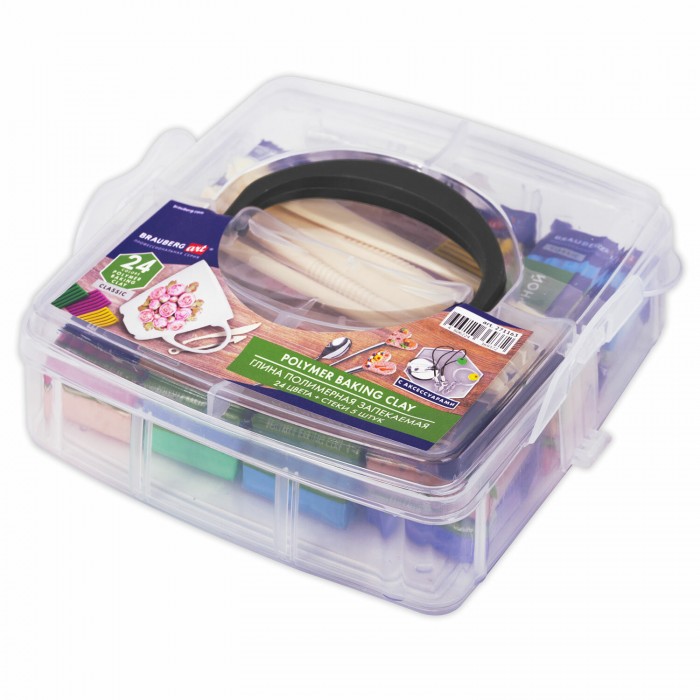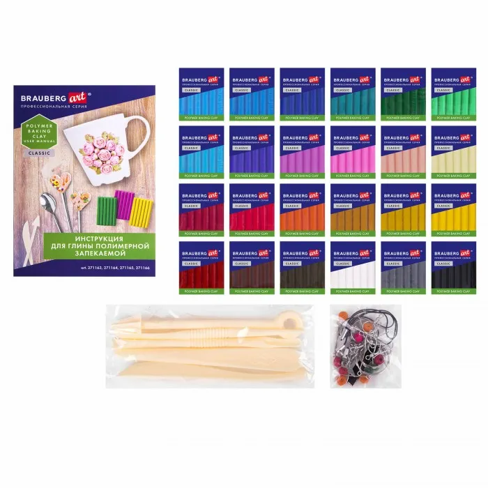 Глина полимерная запекаемая, НАБОР 24 цвета по 20 г, с аксессуарами в кейсе, BRAUBERG ART, 271163