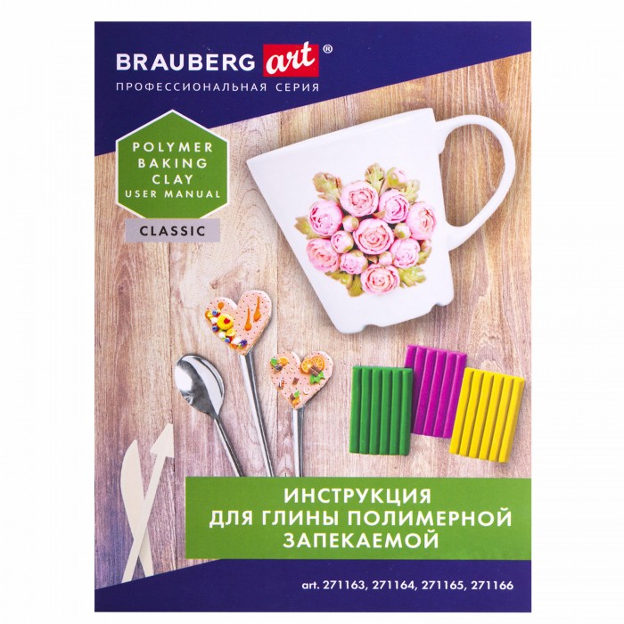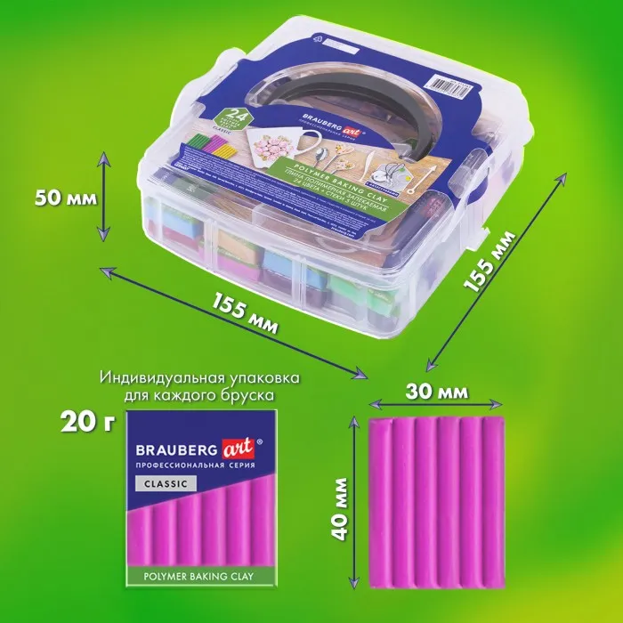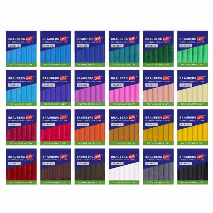 Глина полимерная запекаемая BRAUBERG ART CLASSIC - профессиональная серия. Предназначена для лепки и моделирования, создания игрушек, украшений, предметов интерьера, сувениров.