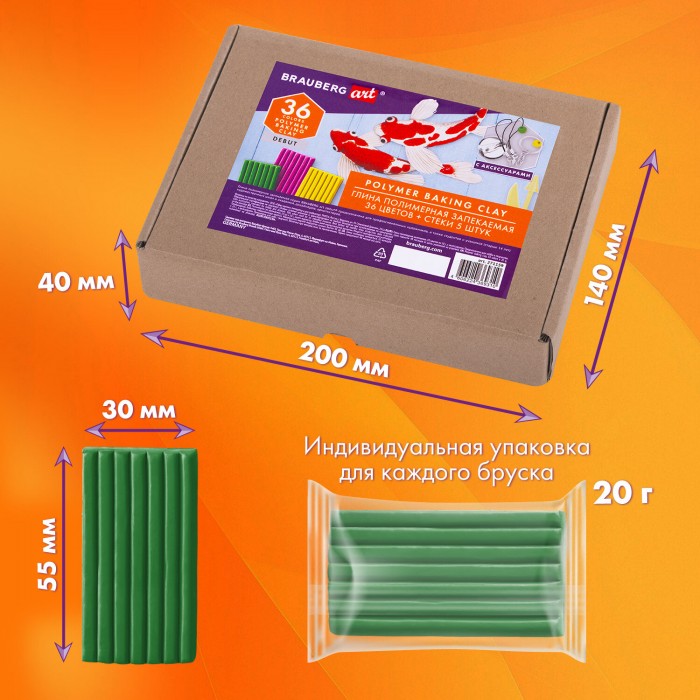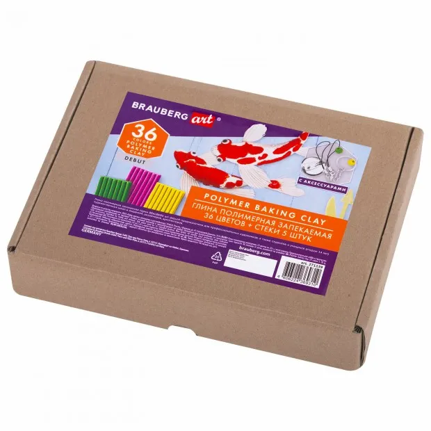 Глина полимерная запекаемая BRAUBERG ART DEBUT предназначена для лепки и моделирования, создания игрушек, украшений, предметов интерьера, сувениров.