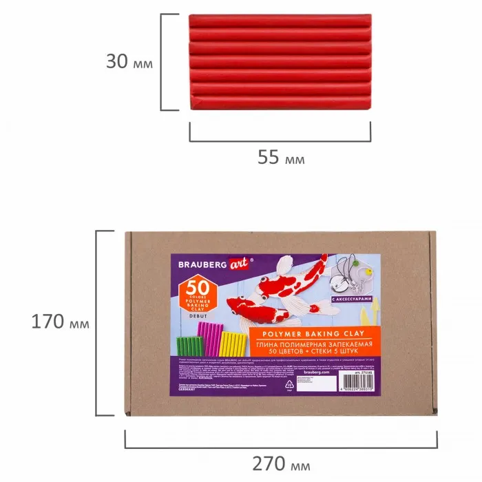 Глина полимерная запекаемая BRAUBERG ART DEBUT предназначена для лепки и моделирования, создания игрушек, украшений, предметов интерьера, сувениров.