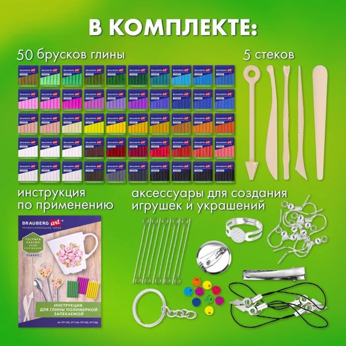 Глина полимерная запекаемая BRAUBERG ART CLASSIC - профессиональная серия. Предназначена для лепки и моделирования, создания игрушек, украшений, предметов интерьера, сувениров.