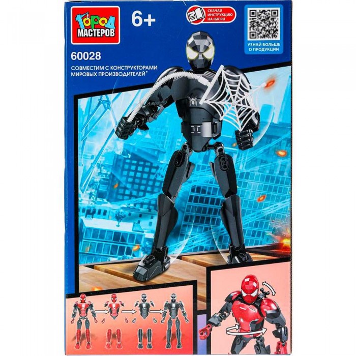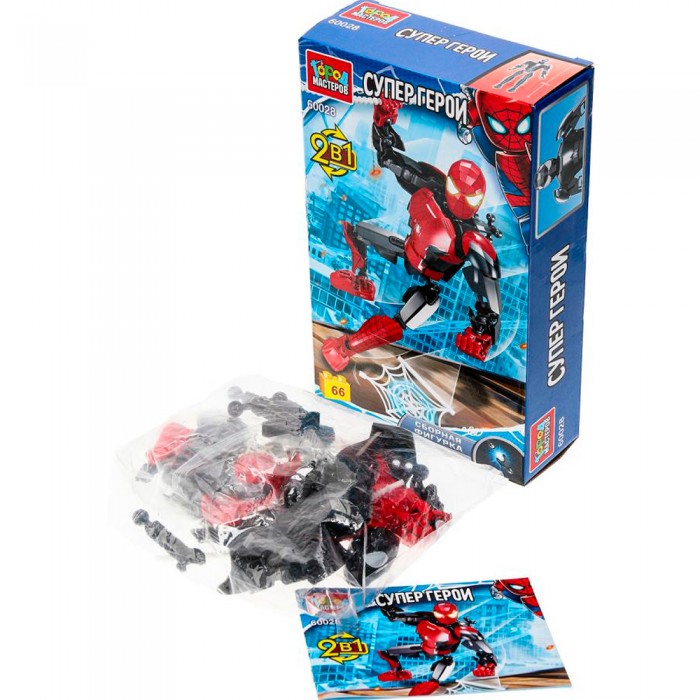 Размер упаковки: 23 х 15 х 5 см Размер изделия: 23 х 15 х 5 см Функционал: конструктор Вид упаковки: картонная коробка Страна-изготовитель: Китай Материал: полимеры Комплектация: конструктор - 1 шт Возраст ребенка: для детей от 6 лет Конструктор из коллекции «Супергерои» ТМ «Город мастеров» станет прекрасным подарком для маленького фантазёра. Особенности: - 66 деталей - подвижные детали (шарнирное соединение) - паутина в комплекте - все детали легко и плотно соединяются между собой - совместим с моделями конструкторов мировых брендов