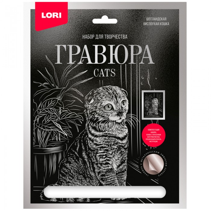 Гравюра с эффектом серебра Lori "Шотландская вислоухая", 27,5*21,5см