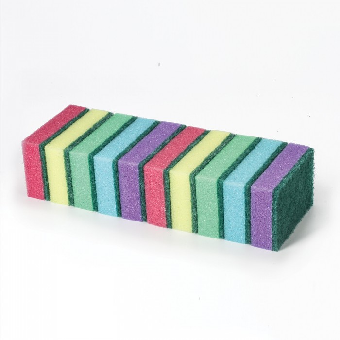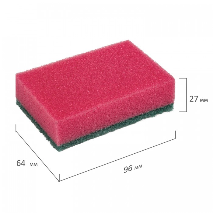 Губки бытовые MAXI, 27х96х64 мм, КОМПЛЕКТ 10 шт., поролон/абразив, для посуды/уборки, ОФИСМАГ, К0012, 601553