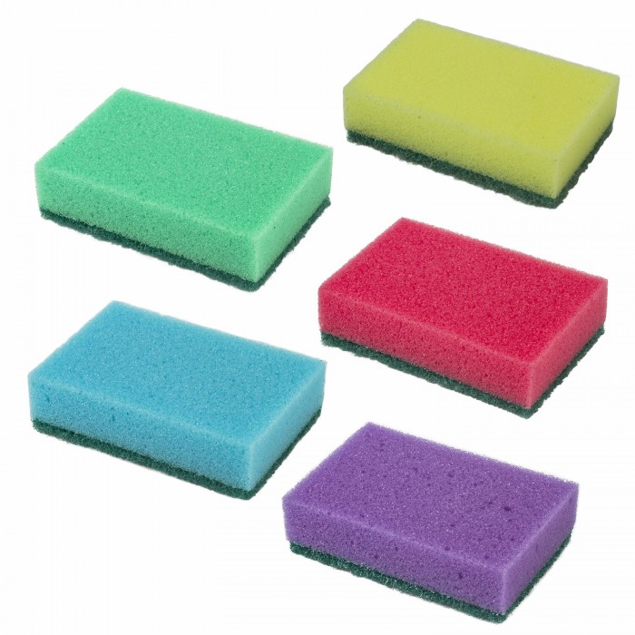 Губки бытовые STANDART, 26х80х53 мм, КОМПЛЕКТ 5 шт., поролон/абразив для посуды/уборки, LAIMA, К0014, 601555
