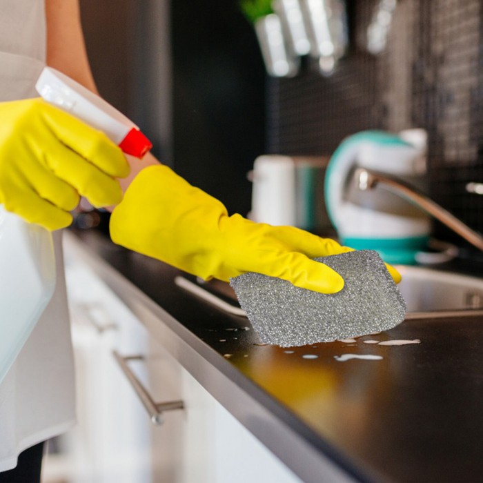 Поролоновые губки LAIMA в оплетке металлизированной нитью идеально подходят для удаления стойких загрязнений без повреждения поверхности.