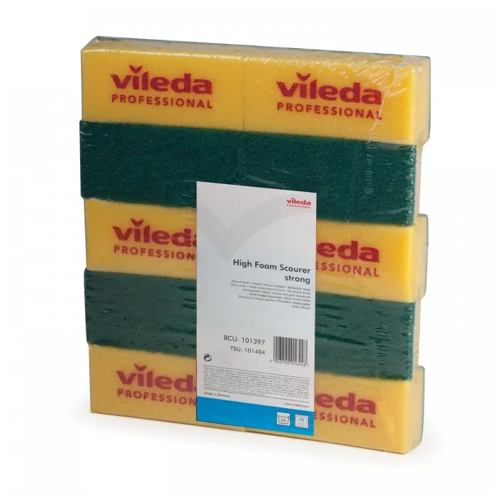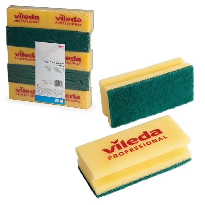 Губки VILEDA "Виледа", комплект 10 шт., для любых поверхностей, желтые, зеленый абразив, 7х15 см, 101397