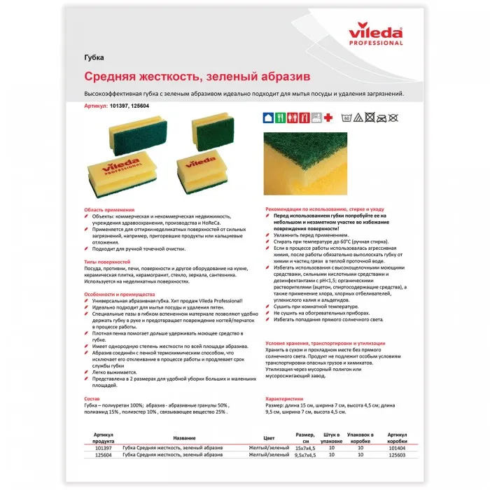 Удобна в работе, обеспечивает хороший захват и обладает повышенными эргономическими свойствами. Чистящая поверхность губки изготовлена из высококачественного материала без добавления абразивных волокон. Позволяет проводить мягкую очистку поверхностей.