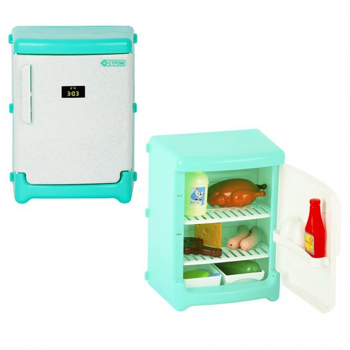 Размер упаковки: 72х38х38 см Размер изделия: 24х18х35 см Вид коробки: коробка Бренд: Совтехстром Материал: пластмасса Страна производства: Россия Изящный игрушечный холодильник с продуктами оснащен с двумя достаточно большими полками, на которых ребенок сможет разместить пластмассовые продукты, а внизу расположены два выдвижных ящичка. В комплект входит набор продуктов: батон, хлеб, яичница, курица, круассан, 2 сосиски и яйцо.