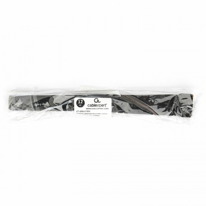 Хомуты-липучки 200 x 11 мм на основе ленты Velcro®, CABLEXPERT, черные (12 шт.), VT-200x11BK