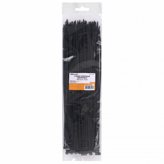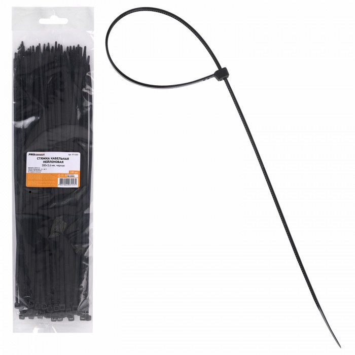 Хомуты (стяжки), нейлоновые, 3,6 мм х 300 мм, комплект 100 шт., черные, европодвес, 57-0301