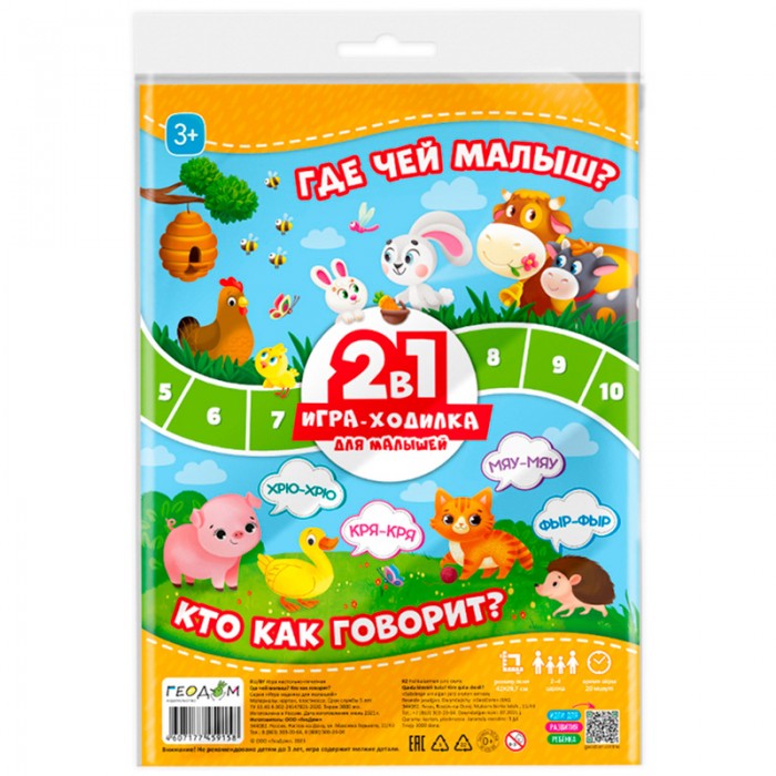 Игра-ходилка настольная ГЕОДОМ "Для малышей 2в1. Где чей малыш+Кто как говорит", с фишками