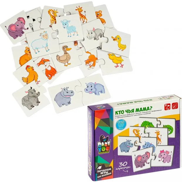 Размер упаковки: 22,3 х 17,3 х 3,7 см Функционал: настольная игра, картинки-половинки, подбери пару Упаковка: картонная коробка Страна обладатель бренда: Россия Материал: картон Комплектация: карточка - 30 шт. (15 пар) Возраст ребенка: от 3 лет Развивающая игра предназначена для самых маленьких. Суть игры: игрокам предстоит находить половинки картинок и составлять целое изображение. Особенности: - игра по принципу пазла: нужно собрать картинки, состоящие из двух элементов; - реалистичные картинки; - яркие цвета; - удобная форма; - знакомство с животными; - древесный материал. Оригинальная настольная игра: - поможет весело и интересно провести время; - направлена на развитие логического и стратегического мышления, коммуникативных навыков, логики.