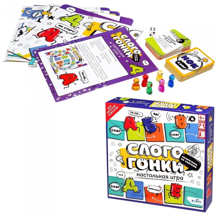 Размер упаковки: 24*24*4 см Вес: 370 г Функционал: настольная игра Упаковка: картонная коробка Страна обладатель бренда: Россия Материал: бумага, картон, полимерные материалы Комплектация: игровое поле-пазл, 112 карт (56 карт слогов, 24 карты бонусов, 32 карты действий), 6 фишек, кубик, правила игры Возраст ребенка: от 6 лет Настольная игра позволит весело и интересно провести совместный досуг с друзьями и в кругу семьи. Красочные элементы привлекут внимание ребенка. Суть игры: участникам предстоит перемещаться по игровому полю, собирая по пути слоги и составляя из них слова. Победит тот, кто соберет наибольшее количество слогов. Оригинальная игра поможет с пользой провести время. Настольная игра направлена на развитие логического мышления, коммуникативных навыков, умения манипулировать мелкими предметами. Все элементы игры выполнены из качественных и прочных материалов, окрашенных безопасными нетоксичными красками, устойчивых к износу и выгоранию. Более подробные прави