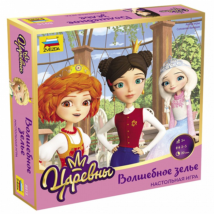 Комплектация: игровой кубик, игровое поле, фишки царевен - 5 шт., планшеты игроков - 5 шт., жетоны зелий и ингредиентов - 50 шт., правила Материал: картон, бумага, пластик Упаковка: картонная коробка Размер упаковки: 24,2*24,1*5,8 см 24,1В5,8озраст: 5+ Количество игроков: 2-5 Время партии: 20 мин. Страна обладатель бренда: Россия Игрокам предстоит устроить эксперименты с магическими эликсирами. Для этого нужно собирать ингредиенты. Красочная и яркая настольная игра представляет собой запутанный квест. Это прекрасный способ весело и с пользой провести время с друзьями и в кругу семьи. Красивые элементы привлекут внимание ребенка. Оригинальная игра поможет интересно провести время. Настольная игра направлена на развитие логического мышления, коммуникативных навыков, умения манипулировать мелкими предметами. Все элементы игры выполнены из качественных и прочных материалов, окрашены безопасными нетоксичными красками, устойчивыми к износу и выгоранию.