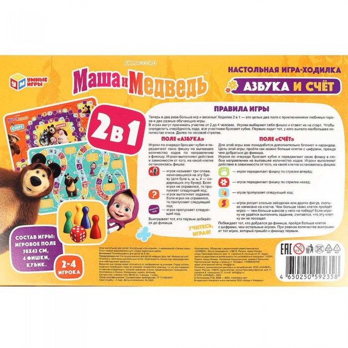 Игра Умка Маша и Медведь. Азбука и счёт. Ходилка 2в1 4650250592358