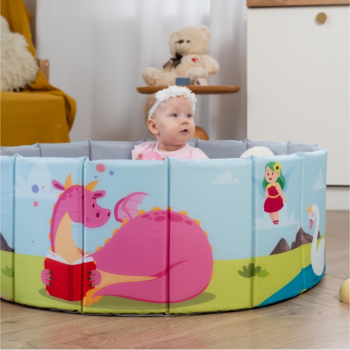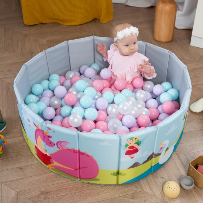 Складной сухой бассейн ROMANA серии «Мир приключений» - не только развивающая безопасная игровая зона, но и увлекательная игрушка для детей с раннего возраста.