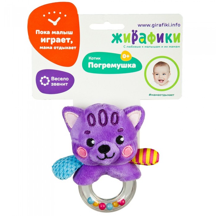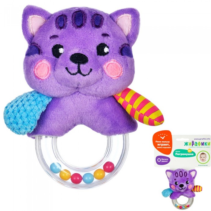 Размер в упаковке-0.3 × 17 × 17 см Вес-0.09 кг Погремушка - одна из первых и самых любимых игрушек для каждого малыша. Погремушки помогают детям развивать тактильные ощущения, хватательный рефлекс, а также зрительное и слуховое восприятие. Играть с такой игрушкой не только полезно, но и очень интересно! Разноцветные шарики внутри пластмассового колечка весело подпрыгивают и забавно гремят, если хорошенько потрясти игрушкой в воздухе. Котик сшит из очень приятных на ощупь разноцветных тканей: гладких, ворсистых и вязаных. Размер игрушки (ДхШхВ) составляет 11х5х14 см. Изделие изготовлено из текстиля и пластика. Рекомендованный возраст: 0 мес. +