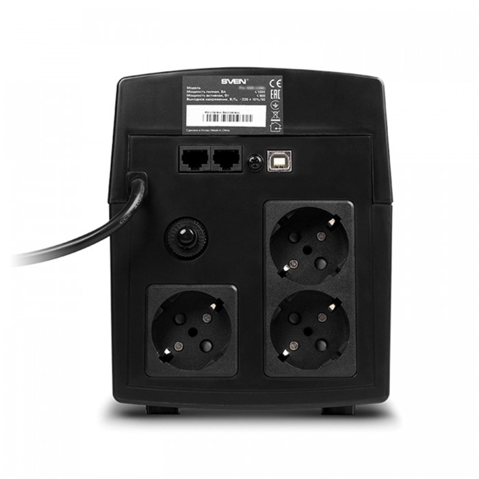 Источник бесперебойного питания SVEN Pro 1500, 1500VA (900W), 3 евророзетки, 2 розетки RJ45, SV-013875