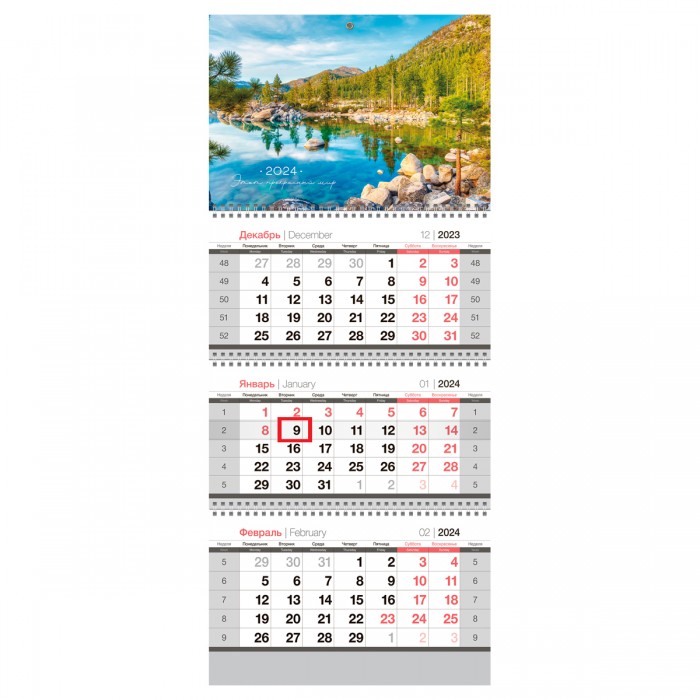 Календарь - это неотъемлемая часть жизни деловых людей. Современному человеку необходимо систематизировать свой день, назначать встречи, быть пунктуальным. От этого зависит будущий доход и имидж. Календарь поможет не забыть о важных событиях жизни: днях рождения, значимых круглых датах, праздниках. Календарь квартальный на 2024 год, 3 блока на 3-х гребнях. Размер календаря – 295×660 мм. Блок: • Материал – офсетная бумага. • Кол-во гребней – 3. Верхняя подложка: • Материал – картон. • Цветность – полноцветная. Нижняя подложка: • Материал – картон. • Цветность – 1 краска. Кол-во пикколо – 1. Кол-во бегунков – 1.