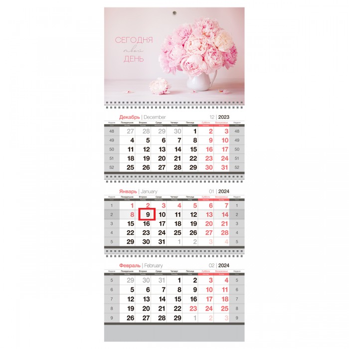 Календарь - это неотъемлемая часть жизни деловых людей. Современному человеку необходимо систематизировать свой день, назначать встречи, быть пунктуальным. От этого зависит будущий доход и имидж. Календарь поможет не забыть о важных событиях жизни: днях рождения, значимых круглых датах, праздниках. Календарь квартальный на 2024 год, 3 блока на 3-х гребнях. Размер календаря – 295×660 мм. Блок: • Материал – офсетная бумага. • Кол-во гребней – 3. Верхняя подложка: • Материал – картон. • Цветность – полноцветная. Нижняя подложка: • Материал – картон. • Цветность – 1 краска. Кол-во пикколо – 1. Кол-во бегунков – 1.