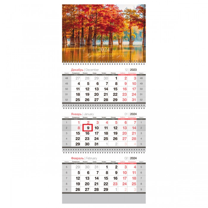 Календарь - это неотъемлемая часть жизни деловых людей. Современному человеку необходимо систематизировать свой день, назначать встречи, быть пунктуальным. От этого зависит будущий доход и имидж. Календарь поможет не забыть о важных событиях жизни: днях рождения, значимых круглых датах, праздниках. Календарь квартальный на 2024 год, 3 блока на 3-х гребнях. Размер календаря – 295×660 мм. Блок: • Материал – офсетная бумага. • Кол-во гребней – 3. Верхняя подложка: • Материал – картон. • Цветность – полноцветная. Нижняя подложка: • Материал – картон. • Цветность – 1 краска. Кол-во пикколо – 1. Кол-во бегунков – 1.
