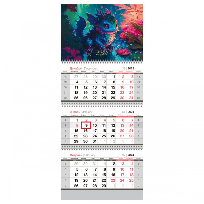 Календарь - это неотъемлемая часть жизни деловых людей. Современному человеку необходимо систематизировать свой день, назначать встречи, быть пунктуальным. От этого зависит будущий доход и имидж. Календарь поможет не забыть о важных событиях жизни: днях рождения, значимых круглых датах, праздниках. Календарь квартальный на 2024 год, 3 блока на 3-х гребнях. Размер календаря – 295×660 мм. Блок: • Материал – офсетная бумага. • Кол-во гребней – 3. Верхняя подложка: • Материал – картон. • Цветность – полноцветная. Нижняя подложка: • Материал – картон. • Цветность – 1 краска. Кол-во пикколо – 1. Кол-во бегунков – 1.