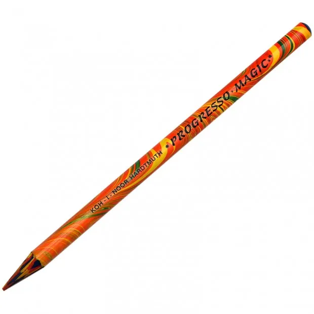 Карандаши цельнографитные Koh-i-Noor Progresso Magic – это многоцветные карандаши, грифели которых состоят из трех цветов, но еще необычнее. Карандаши состоят только из толстого грифеля, покрытого лаком. Точатся обычными точилками, грифель яркий и мягкий. Линия на бумаге меняет свой цвет в процессе рисования и раскрашивания, что позволяет получать совершенно неожиданные и никогда не повторяющиеся рисунки. Карандаши мягкие и не требуют сильного надавливания при рисовании. Используя Koh-i-Noor Progresso Magic можно получить настоящие шедевры, карандаши развивают креативное мышление и фантазию.