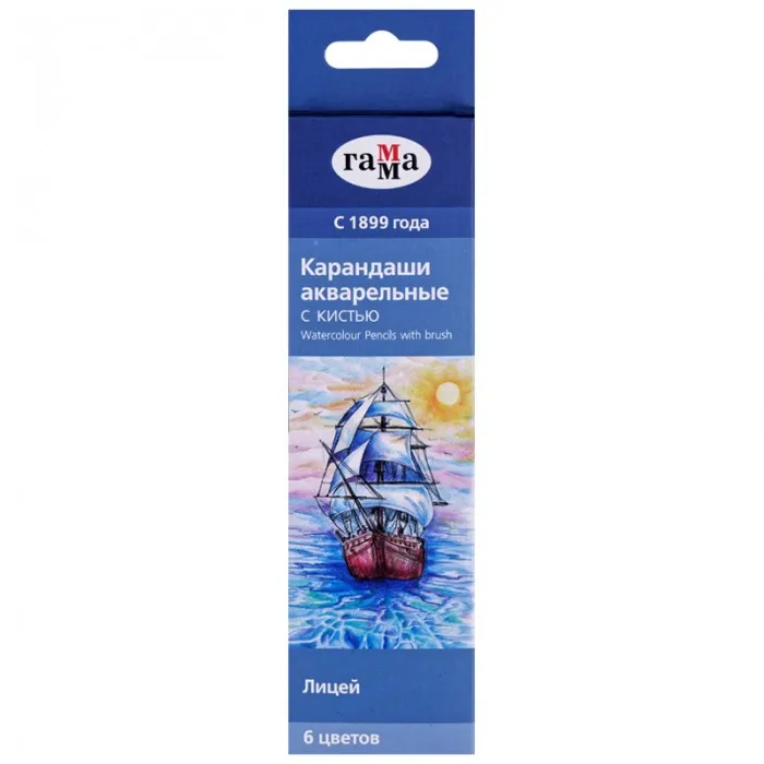 Карандаши акварельные Гамма "Лицей", 06цв., шестигранные, заточен., с кистью, картон. упаковка, европодвес