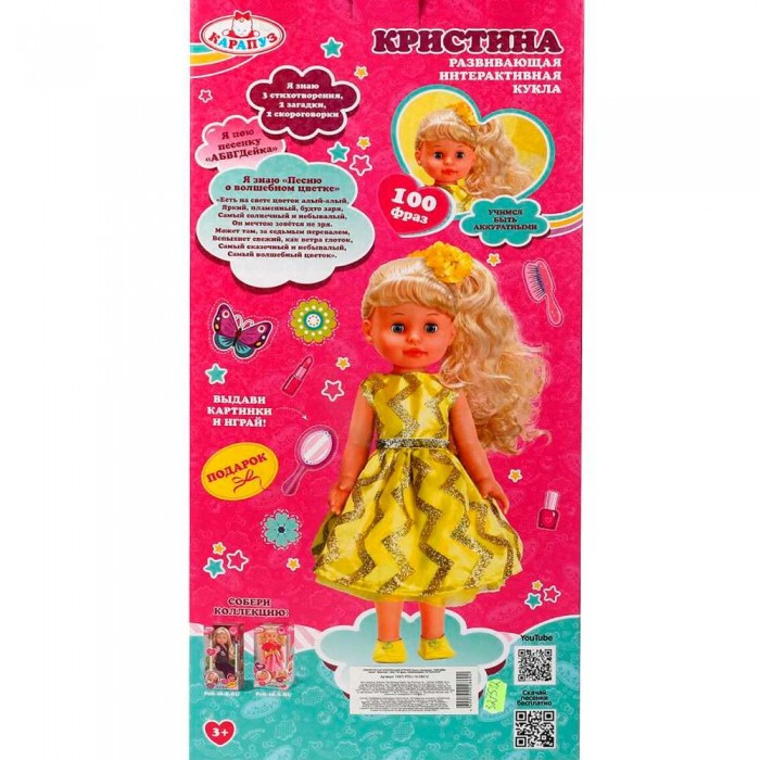 Карапуз Кристина АБВГДЕЙКА 45см, 100 фраз, 7 аксессуаров