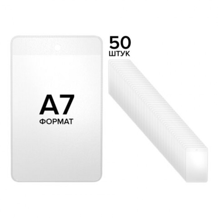 Карман информационный подвесной, ценникодержатель А7, КОМПЛЕКТ 50 шт., ПВХ, BRAUBERG, 291287