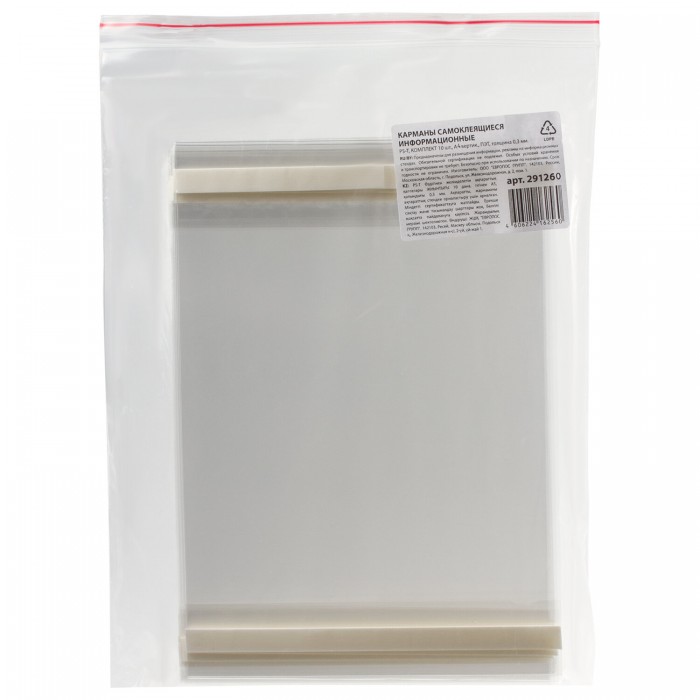 Карманы информационные самоклеящиеся PS-T, А4 вертикальные, КОМПЛЕКТ 10 шт., ПЭТ, толщина 0,3 мм, 172552