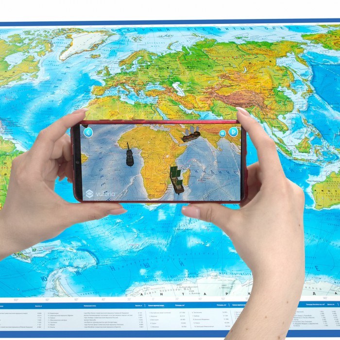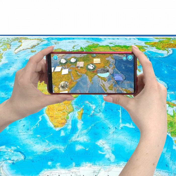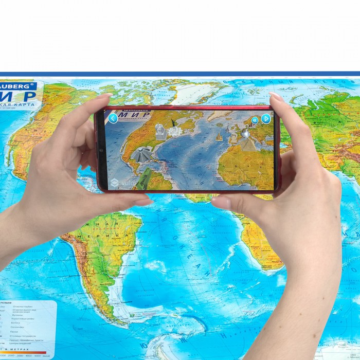 Карта мира физическая 157х107 см, 1:21,5М, с ламинацией, интерактивная, в тубусе, BRAUBERG, 112388