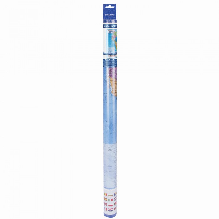 На политической карте мира BRAUBERG отображается современное политико-административное устройство мира: названия государств и их столицы, крупнейшие города и границы стран. Ниже расположены государственные флаги.