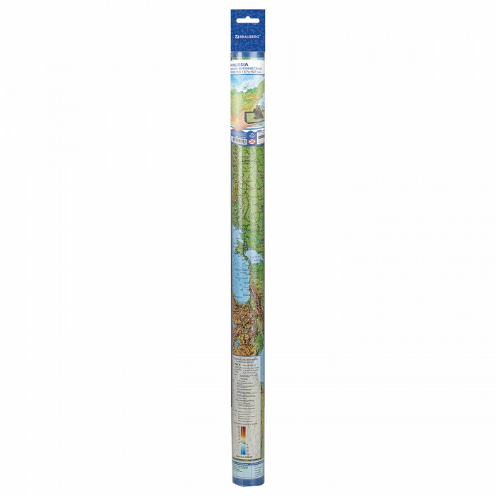 На физической карте России BRAUBERG отображаются названия рек и морей, городов и областей, гор и вулканов.