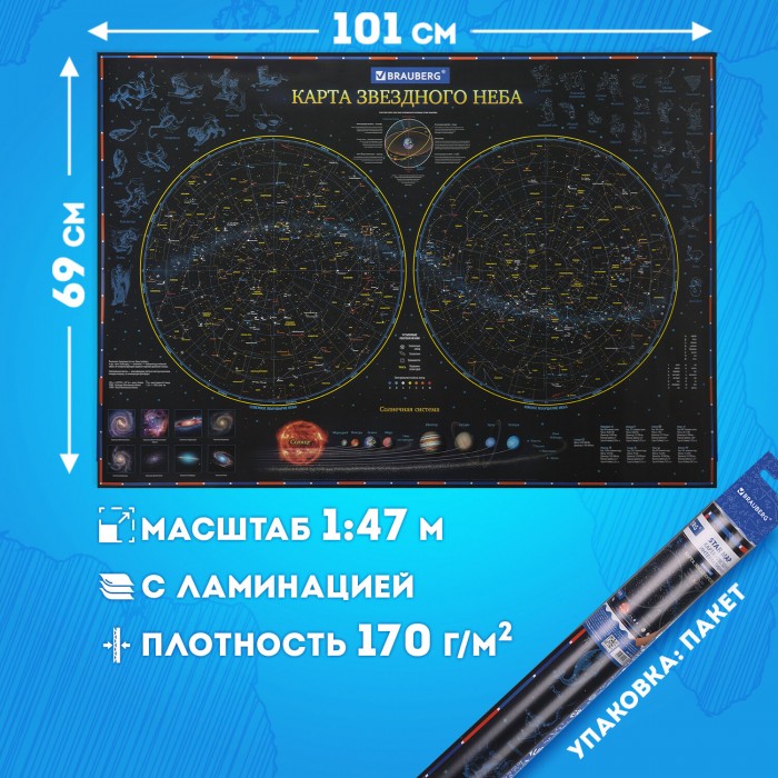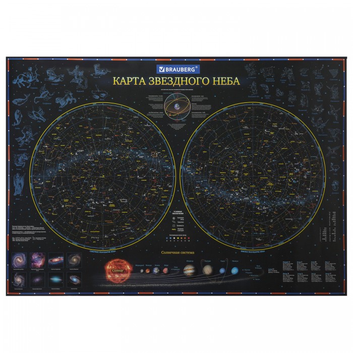 На карте звездного неба и планет BRAUBERG можно рассмотреть солнечную систему, далекие галактики и созвездия.