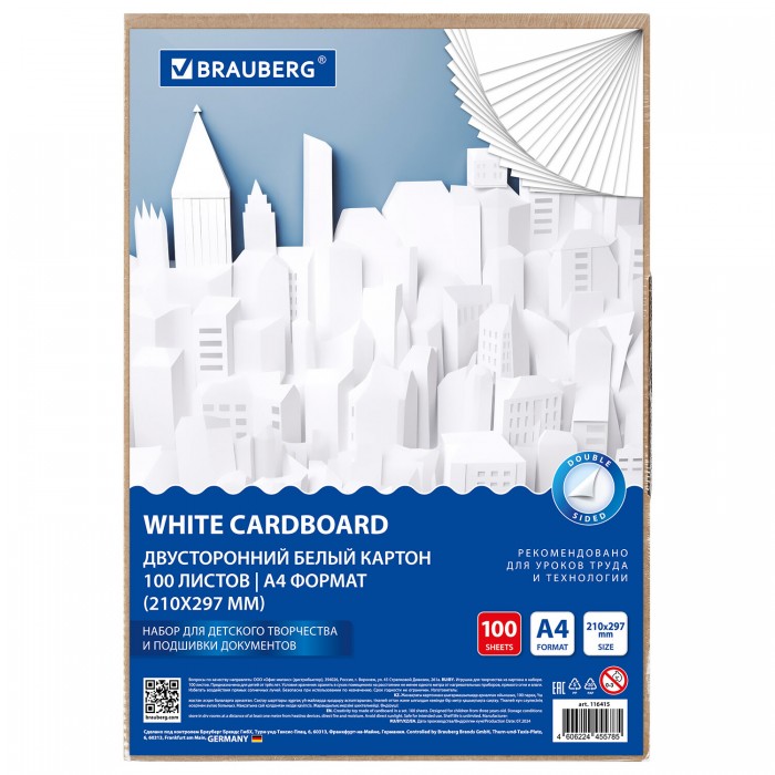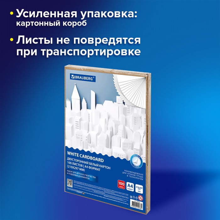 Картон белый А4 МЕЛОВАННЫЙ (белый оборот) 100 листов, в коробке, BRAUBERG, 210х297 мм, 116415