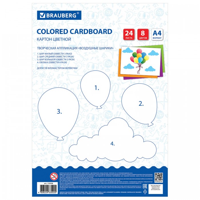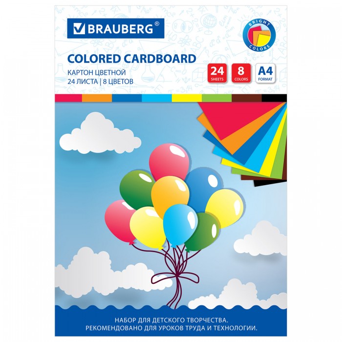 Набор цветного картона BRAUBERG предназначен для творчества и хобби и может использоваться детьми с трехлетнего возраста. Картон рекомендован для уроков труда и технологии. Творческая инструкция по созданию аппликации на обороте.