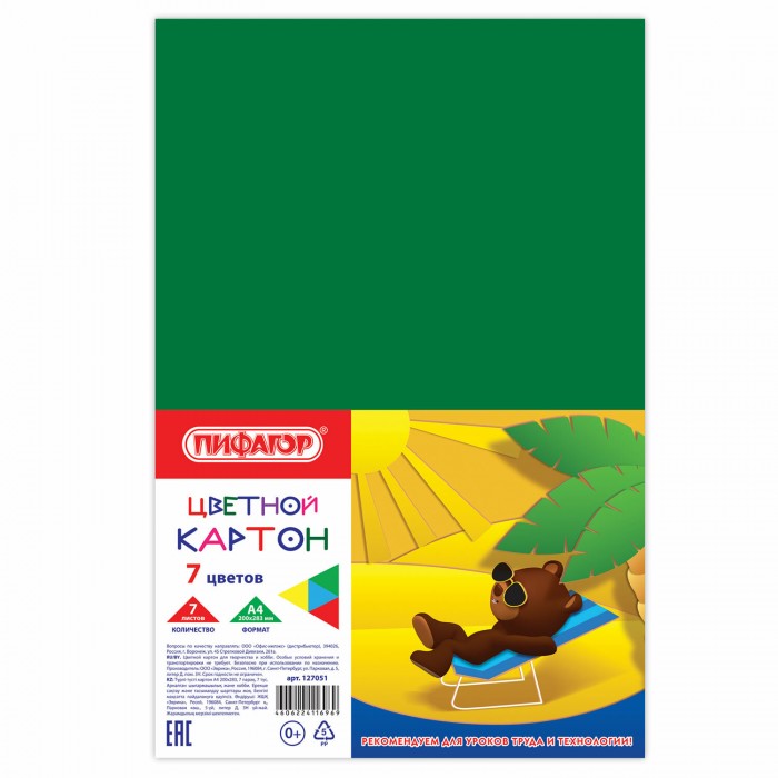 В интернет-магазине AV Group можно купить Картон цветной А4 немелованный (матовый), 7 листов 7 цветов, ПИФАГОР, 200х283 мм, 127051, производитель Россия, артикул 127051 по цене 61 руб. Продаем физическим и юридическим лицам, при условии минимальной суммы заказа (общей суммы в корзине) от 5 тысяч рублей. Возможна доставка курьером по Верхней Пышме, Екатеринбургу и Свердловской области. В регионы отправляем транспортной компанией. Чтобы уточнить необходимое количество товара и дополнительные условия, звоните: 8(800)201-75-47, менеджер вас проконсультирует.