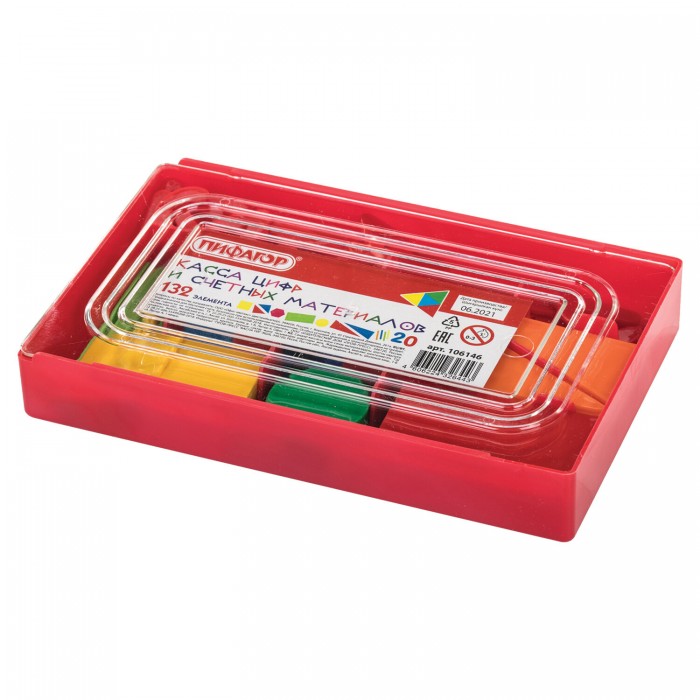 Касса цифр и счетных материалов 132 элемента, пенал, ПИФАГОР, 106146