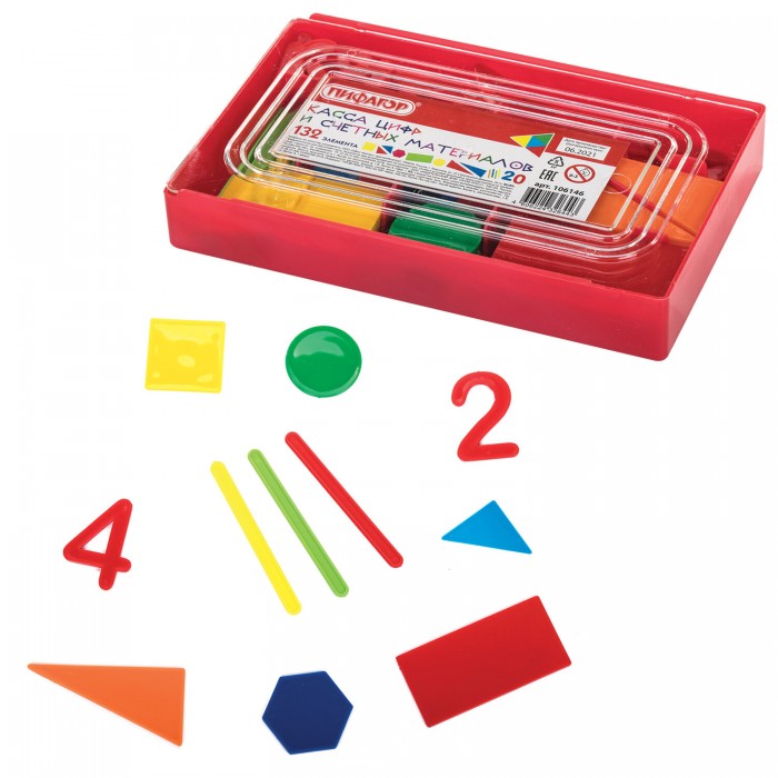 Касса цифр и счетных материалов ПИФАГОР - обучающее и развивающее наглядное пособие, способствует тренировке мелкой моторики рук. Благодаря пособию ребенок изучит базовые геометрические фигуры, цифры, научится решать простые арифметические задачи.