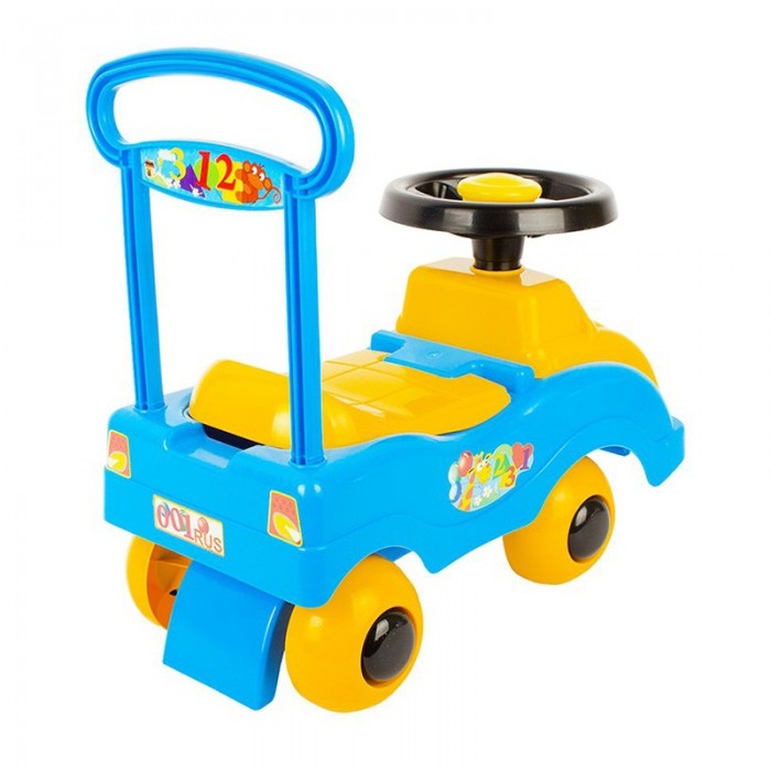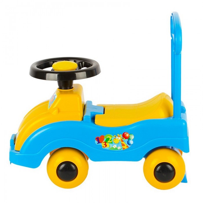 Размеры (см): 48*26*33 Игрушка Автомобиль-каталка – пластмассовая игрушка, которую можно использовать как на улице, так и в доме. Такая машинка приводится в движение с помощью ног ребёнка, который, сидя на сиденье отталкивается ножками от пола. Сиденье машинки поднимается, во внутреннем отсеке можно перевозить игрушки. На руле встроена пищалка. Размер игрушки (ДхШхВ): 46х26х44 см. Максимально допустимая нагрузка: до 25 кг. Игрушка изготовлена из высококачественных материалов. Изделие проверено на соответствие требованиям технических регламентов Таможенного Союза и имеет сертификацию ЕАС. Возрастные рекомендации от 1,5 лет.