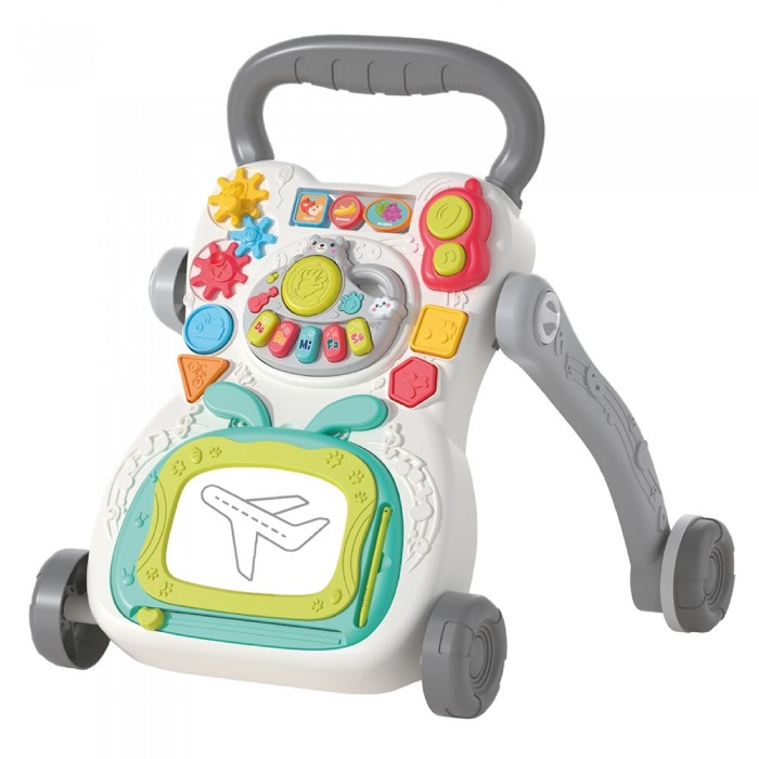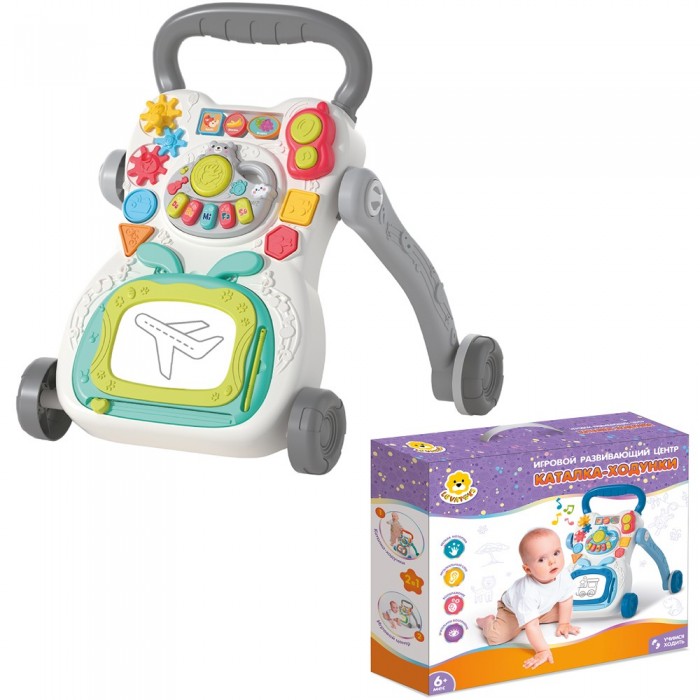 Размер упаковки: 45 х 10 х 40 см Размер изделия: 40,5 х 43 х 45 см Функционал: каталка - ходунки (игровой развивающий центр) Упаковка: картонная коробка с пластиковой ручкой Страна производитель: Китай Материал: пластик Комплектация: каталка - 1 шт. Возраст ребенка: от 6 мес. Красочная каталка-ходунки — отличный подарок малышам, которые только начинают ходить. Особенности: - стимулирует к движению; - интерактивные элементы: телефон, погремушки, шестеренки, сортер, съемная доска для рисования; - съемное музыкальное пианино: ноты, звуки, мелодии, регулировка громкости; - утяжелитель для устойчивости; - световые и звуковые эффекты; - противоскользящие колеса; - удобная опорная ручка; - устойчивая конструкция; - яркие цвета; - прочные материалы. - рекомендуется использовать алкалиновые батарейки 3 шт. "АAА" 1,5V (в комплект не входят) В процессе игры с каталкой малыш будет развивать: - координацию и моторику; - умение держать равновесие; - музыкальный слух; - хождение с опор