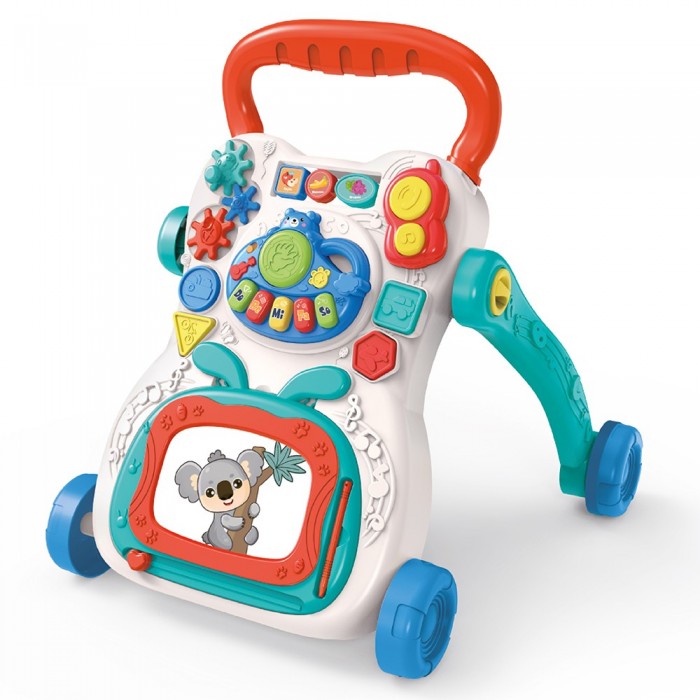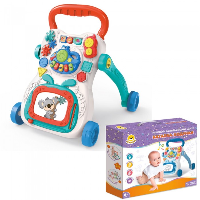 Размер упаковки: 45 х 10 х 40 см Размер изделия: 40,5 х 43 х 45 см Функционал: каталка - ходунки (игровой развивающий центр) Упаковка: картонная коробка с пластиковой ручкой Страна производитель: Китай Материал: пластик Комплектация: каталка - 1 шт. Возраст ребенка: от 6 мес. Красочная каталка-ходунки — отличный подарок малышам, которые только начинают ходить. Особенности: - стимулирует к движению; - интерактивные элементы: телефон, погремушки, шестеренки, сортер, съемная доска для рисования; - съемное музыкальное пианино: ноты, звуки, мелодии, регулировка громкости; - утяжелитель для устойчивости; - световые и звуковые эффекты; - противоскользящие колеса; - удобная опорная ручка; - устойчивая конструкция; - яркие цвета; - прочные материалы. - рекомендуется использовать алкалиновые батарейки 3 шт. "АAА" 1,5V (в комплект не входят) В процессе игры с каталкой малыш будет развивать: - координацию и моторику; - умение держать равновесие; - музыкальный слух; - хождение с опор