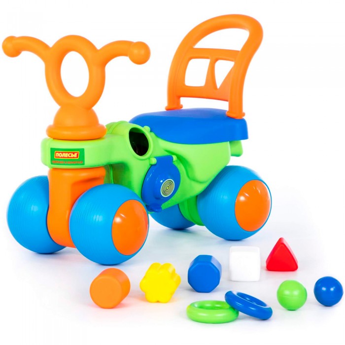 Размер изделия: 49,5х35х42,5 см Состав: пластик Возраст: от 3 лет Упаковка: пакет Комплектация: каталка, геометрические фигуры Страна изготовления: Беларусь Каталка "Крокодильчик" - это функциональная развивающая игрушка для малышей, которая пригодится дома и на прогулке. У каталки 4 колеса, высокая спинка для поддержки осанки, удобный руль, под сиденьем расположен небольшой багажник для геометрических фигур из набора. Таким образом, "Крокодильчик" - это одновременно каталка и сортер, который поможет изучить цвета и фигуры. Также сбоку каталки имеется небольшой циферблат, стрелки которого малыш будет с удовольствием крутить. Катание на "Крокодильчике" будет развивать крупную моторику ребенка, ориентацию в пространстве, а также мышцы ног и спины.
