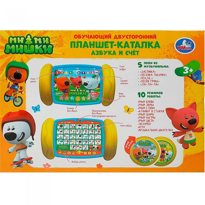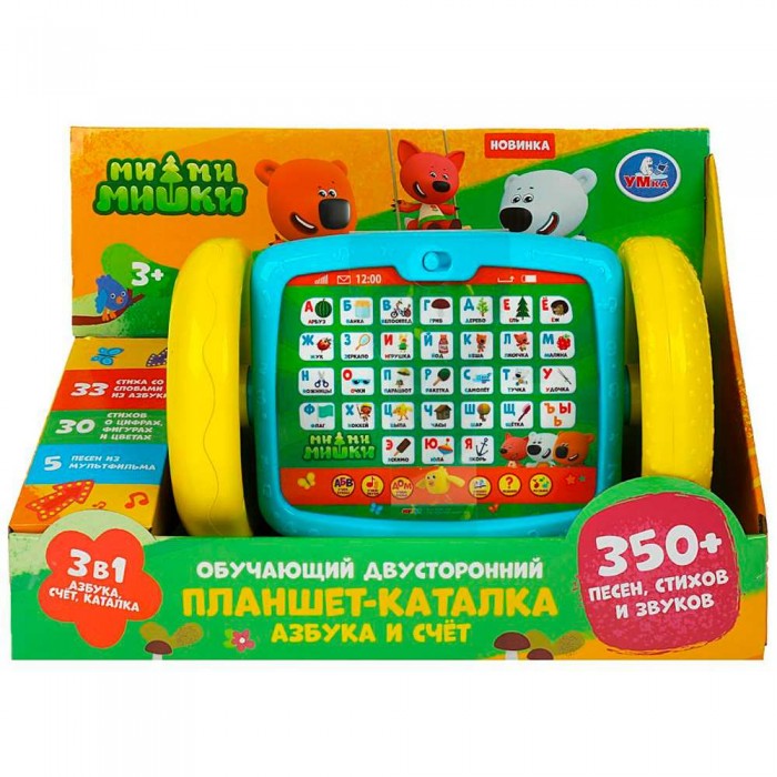 Размер упаковки: 34 х 14 х 24 см Размер изделия: 25 х 3 х 12 см Функционал: музыкальная игрушка Упаковка: картонная коробка открытого типа Страна обладатель бренда: Россия Материал: пластик, металл Комплектация: каталка - 1 шт. Возраст ребенка: от 1 года Обучающая, развивающая, многофункциональная музыкальная игрушка-планшет: - яркая расцветка; - 5 песен из м/ф; - 33 стихотворения со словами из азбуки; - 30 стихов о цифрах, фигурах и цветах; - 3 в 1: азбука, счёт и каталка; - 10 режимов работы; - переключатель «Вкл./Выкл.»; - колеса вращаются; - прочные безопасные материалы; - работает от 3 батареек ААА (в комплекте). Интерактивная игрушка учит пониманию причинно-следственной связи, помогает тренировать координацию движений, восприятие формы и цвета. Игрушка развивает: - зрительное восприятие; - мелкую моторику; - слух; - логику; - воображение.