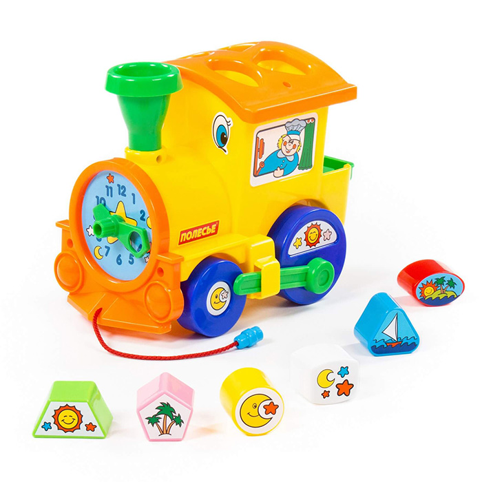 Размер изделия: 22х14,8х18 см Состав: пластик Упаковка: сеточка Возраст: от 1 года Комплектация: паровозик, детали сортера Страна изготовления: Беларусь Занимательный паровозик - это сразу две игрушки в одной. Его можно использовать как каталку на шнурке, а также в качестве сортера. В крыше паровозика расположены отверстия различной формы, в которые нужно вложить соответствующую фигурку. Такое занятие развивает логическое и пространственное мышление, тренирует мелкую моторику рук. Кроме того, спереди на кабине игрушки расположен циферблат со стрелочками, которые можно вращать, изучая время, часы и минуты. Все элементы изделия изготовлены из качественных безопасных материалов, не имеют острых краев и зазубрин. Цвета представлены в ассортименте.